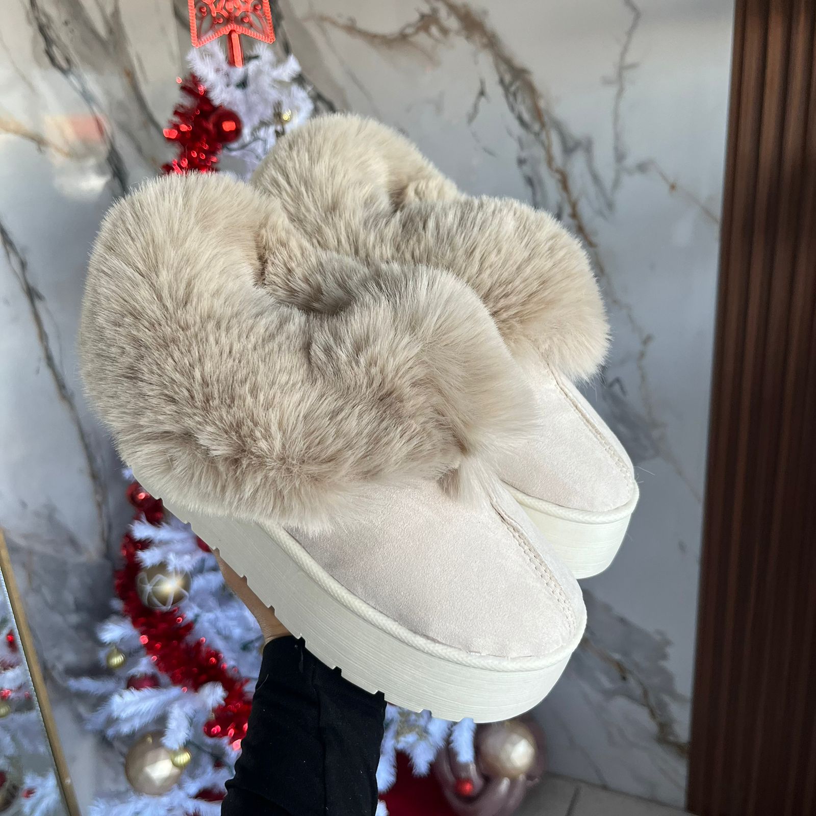 Estas pantuflas tipo botita son puro soft life: peluditas, cómodas y con suela dura para que andes en todas partes sin perder el estilo. Perfectas para estar chill, cute y calentita al mismo tiempo ✨