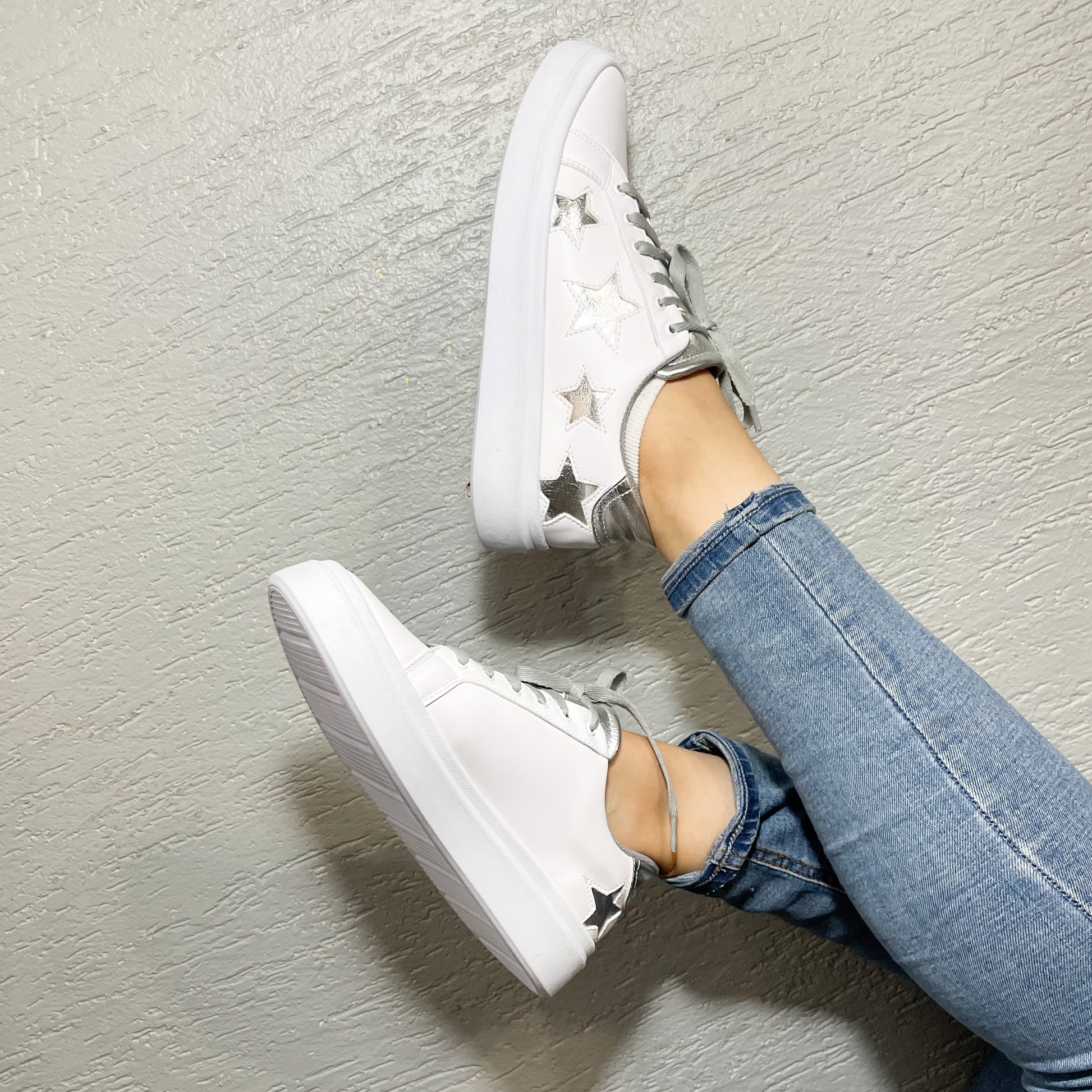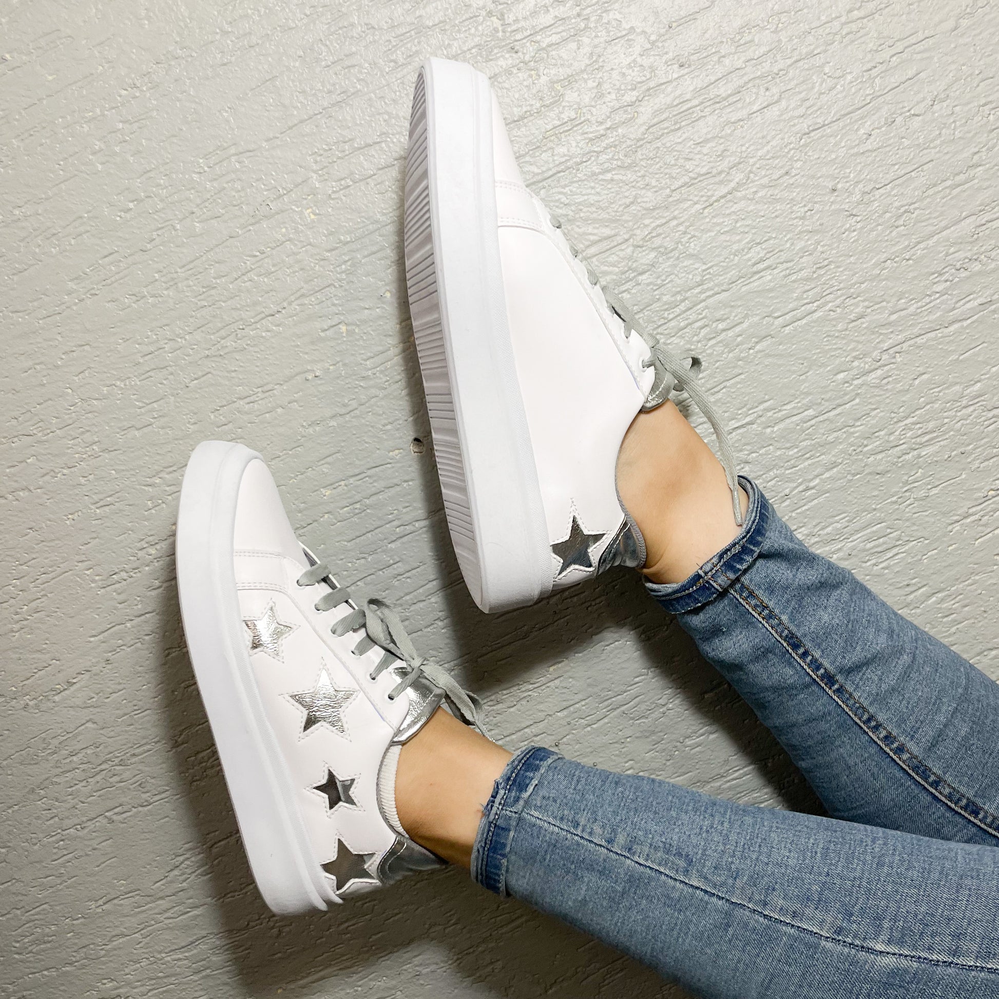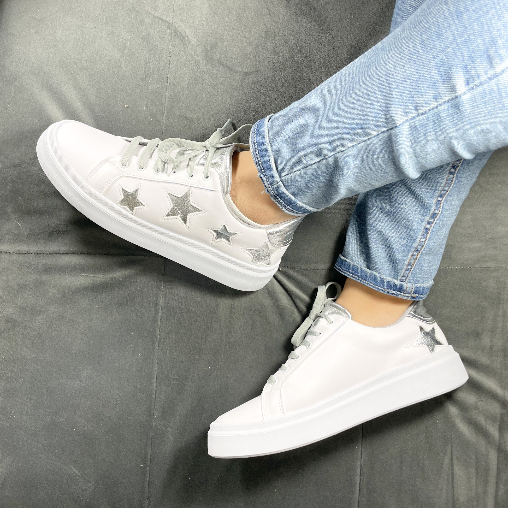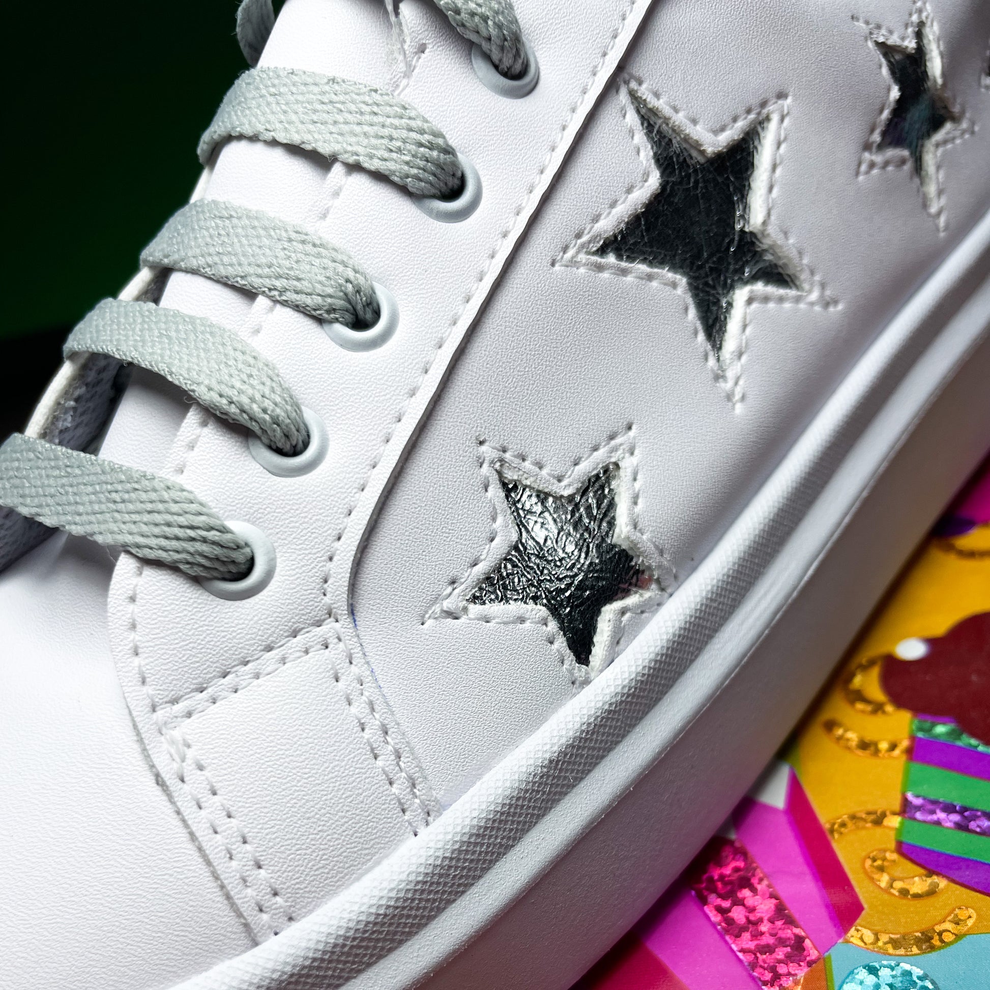 Sus llamativas estrellas plateadas levantan Outfits que llaman la atención de cualquiera.