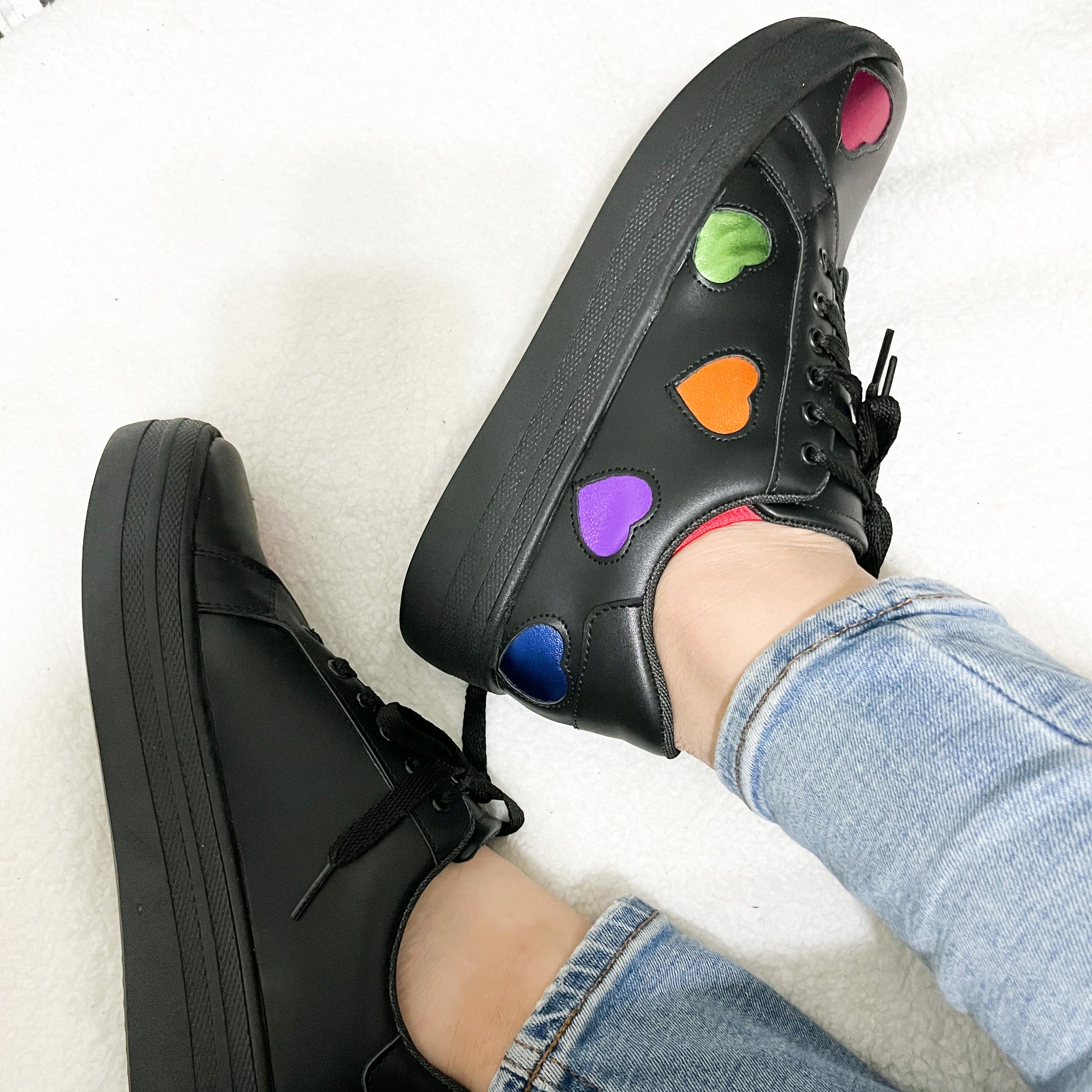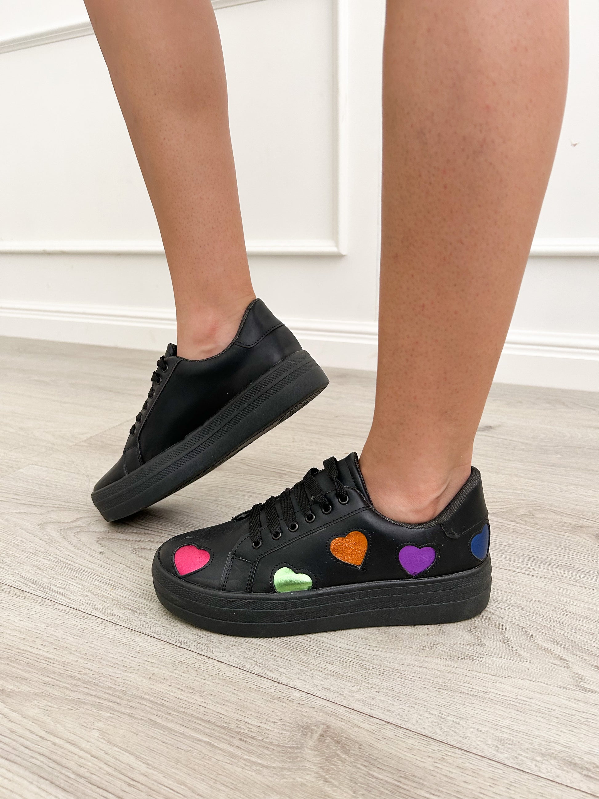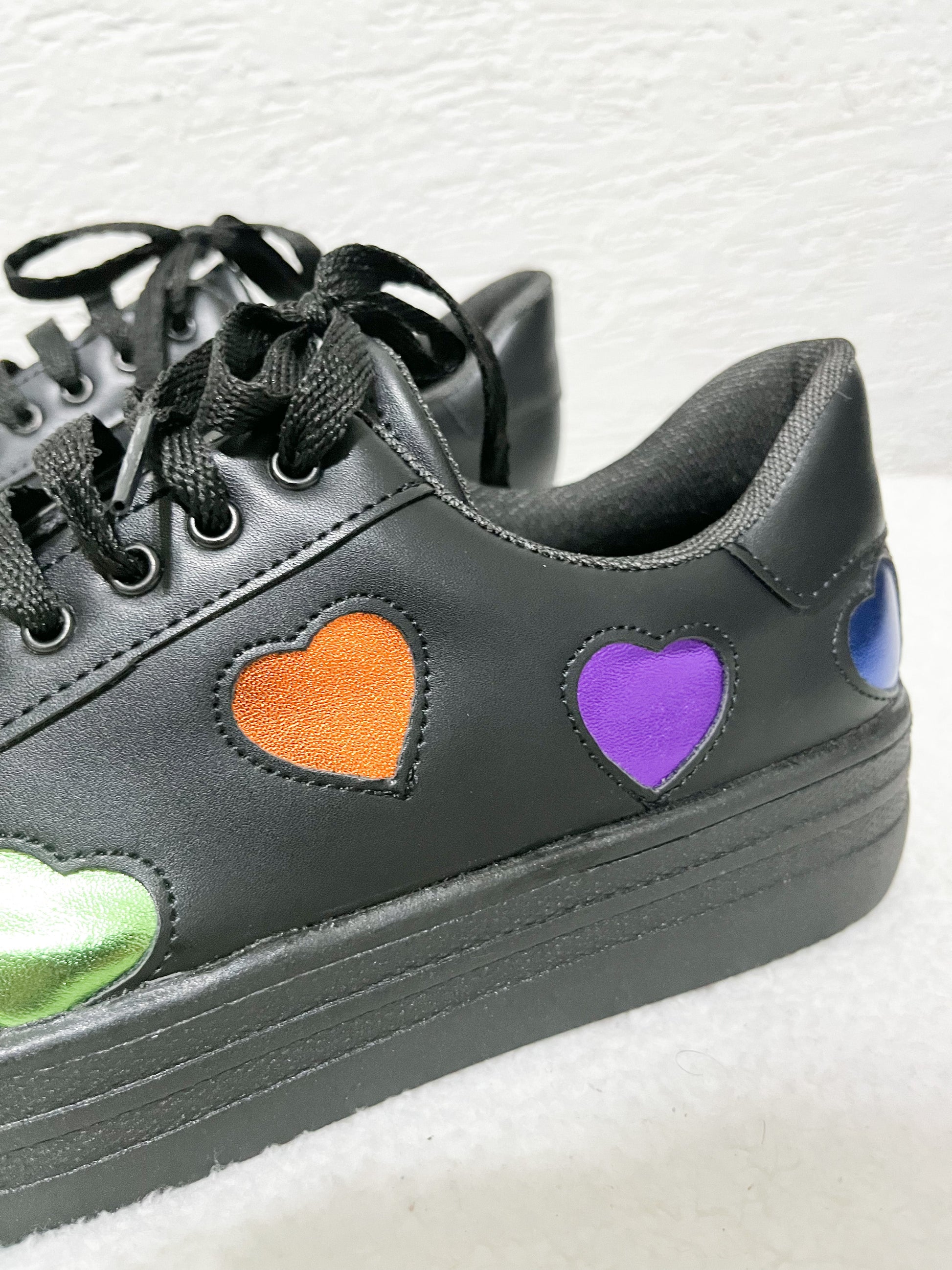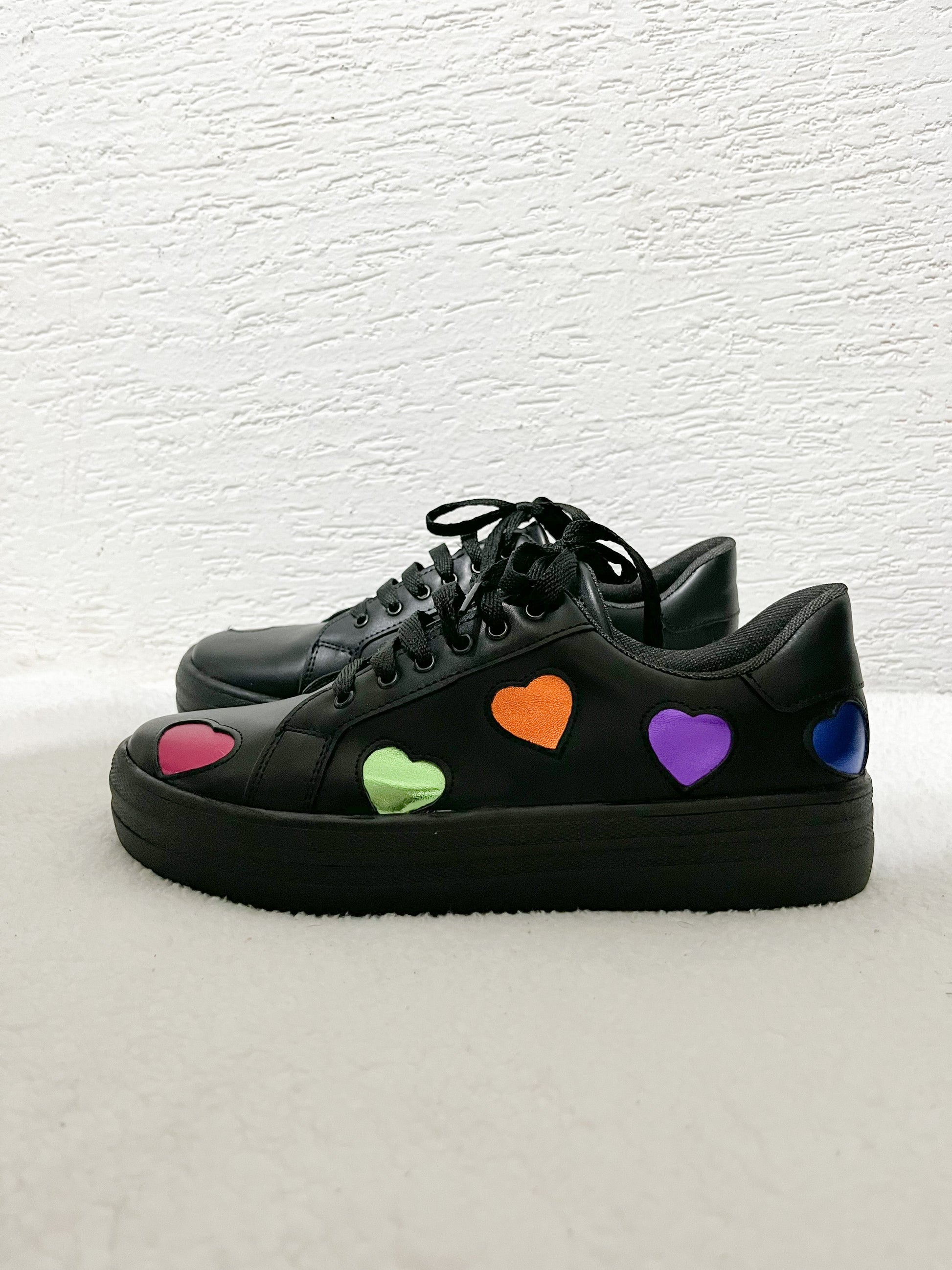 Sneakers con diseño de corazón en colores, azul, morado, naranja, verde y fiusha, divino forro color rosa para las más cute.